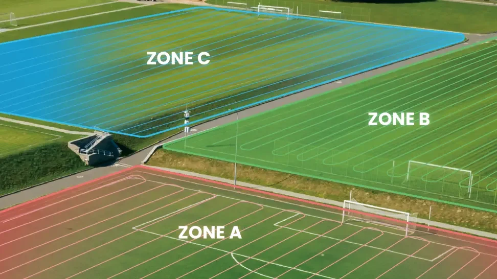 Achieve simultaneous mowing on multiple sports fields and automatically go to the next field upon completion.