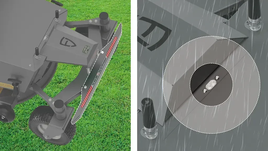 Safeguard itself with collision bumpers, lift protection and raining monitoring, meeting your need for a safe and flawless mowing operation.